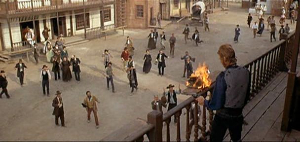 There’s a number of problems with the film, but the most important one is that simply too much is going on and and most of it isn’t followed through. On top of the basic revenge plot there’s a gang of Mexican bandits, that only appear comparatively briefly in a few places; four hippies, that don’t really do anything except for an odd diversion at the end where they try to take over the town; a Sheriff that wants the entire town disarmed, but the character remains somewhat undefined beyond that; and a promising introduction where the local dignitaries bicker about who is responsible for lynching Hud’s brother which is promptly forgotten for the rest of the film.