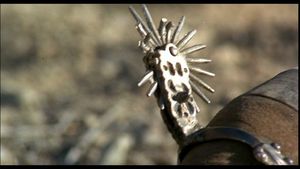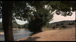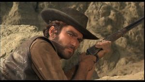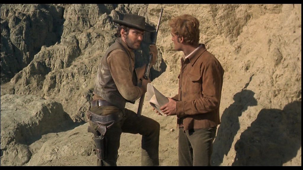 For a mid-budget Spaghetti Western the film is very well shot. There's interesting close-ups of guns and spurs, shots through chairs, and good use of changing focus during conversations. At other times the shots are roughly done and unsteady, much like in Django. It probably isn't entirely original, but generally works well and shows some thought has been put into it. The locations are also pretty good too: the sections in Almeria often use fresh angles and so avoid the tendency to look like too many other Spaghetti westerns, and Brian's flight through the plains at the end is also notable in my mind. Occasionally, the Spanish and Italian locations don't quite seem to match up though: see the two pictures at the side of a chase through the desert arriving at an obviously Italian river (again, towards the end).The Koch Media DVD (part of their Italowestern collection) is a bit mixed, with some parts of it looking absolutely perfect and some parts coming from an obviously quite damaged print. I'm prepared to believe this was unavoidable. Given the English dub is inferior to the Italian dub, it's a shame that a complete set of English subtitles weren't available for the Italian dub.