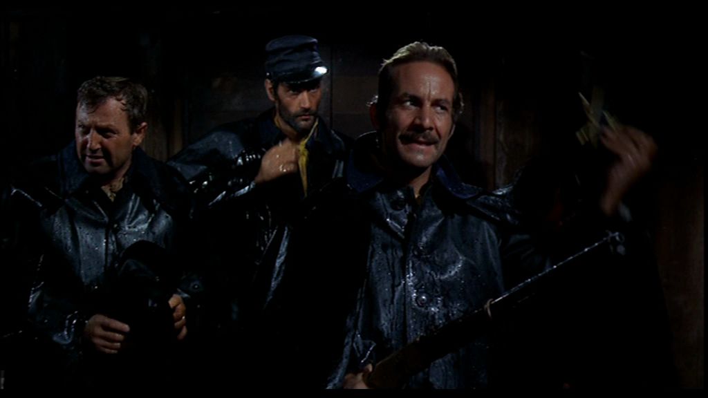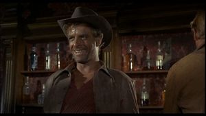 Unfortunately, for all the ambition of the script, it doesn't quite come together. In a large part I think this was due to the English dubbing, which isn't great (both in terms of the dialogue and the acting). There's a section of the film in the middle that was obviously cut from the English release, where Daniel is setting himself up as Sheriff and showing his evenhandedness that is presented in Italian with English subtitles, and this part plays much better, although it's not clear to me whether it's because the dialogue is actually better, or because the badness is less obvious in Italian. The other flaw is that the plot is a bit jumpy—especially at the start—with important points just "happening" with no real build up or motivation. A part of this is the three(!) occasions when people who really should know better agree to ridiculously arranged duels: for example Brian is caught seducing a baddie's woman and the baddie decides to kill him (and is in a position to), Brian suggests they have a duel in the dark with only lit cigars showing the location of the opponent, and the baddie agrees.