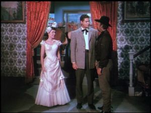 In general, the plot's reasonably good with something always going on, the setting's unusual, the film is obviously a bit cheap (taking place mostly in one saloon set), and the film is short enough that it doesn't overstay its welcome. In a nice surprise, the comic-relief (a mishap prone gunfighter and a snake-oil salesman turned unwilling-bartender) is actually pretty amusing.
